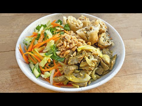 En gros, c'est une salade de vermicelles de riz accompagné de viande de bœuf, de carottes, de concombre, de menthe et de coriandre.