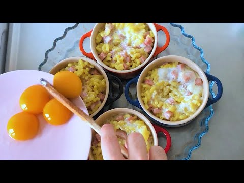 Je vous propose une revisite surprenante des traditionnelles coquillettes jambon. C’est une recette facile et surtout économique. Pour cette recette, j’ai donc préparé des coquillettes que j’ai agrémenté avec du jambon et du fromage râpée. Ensuite, je suis venu casser un œuf dans chaque cocotte pour réaliser des œufs cocottes !
