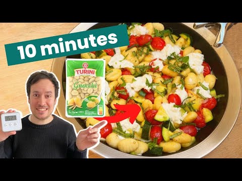 Cette recette de gnocchis est à faire en seulement 10 minutes. C’est une recette express et très simple à réaliser. J’y ajoute des courgettes, des tomates cerises, de l’ail, de la mozzarella et du basilic. Idéal quand vous n’avez pas trop le temps de cuisiner !