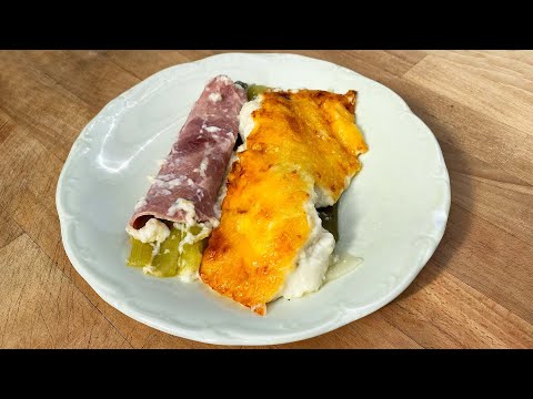 Déposer les morceaux de poireau sur du papier absorbant pour enlever l'excédent d'eau. Ensuite, enrouler chaque morceau de poireau dans une demi-tranche de jambon. Les déposer dans un plat à gratin. Verser la béchamel dessus et recouvrir de fromage râpé. -