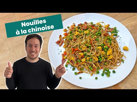 Je vous propose une recette chinoise à base de nouilles que j’ai cuisiné à la façon d’un riz cantonais. C’est une recette facile et rapide à réaliser que vous pourrez faire en moins de 30 minutes. J’ai mis des petits pois, de la carotte, des œufs, des lardons…