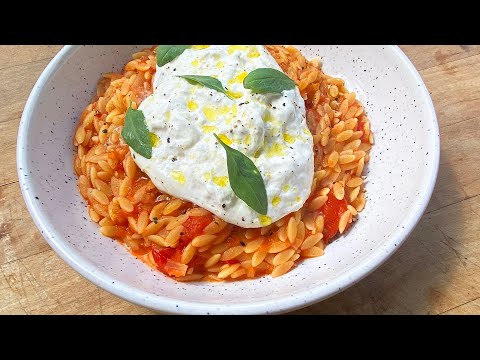 Découvrez cette délicieuse recette d'orzo à la tomate et burrata qui va ravir vos papilles.