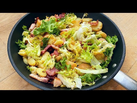 Je vous propose de réaliser ce grand classique de la cuisine : La salade ardennaise. Il s’agit d’un plat complet à faire avec seulement 3 ingrédients : des pommes de terre, du lard et de la salade cuite. C’est un plat qui paraît basique mais au niveau du goût c’est excellent ! Le petit plus de la recette est d’ajouter de déglacer la poêle avec du vinaigre. ça va apporter une petite acidité qui va casser le côté gras du lard. Si vous recherchez une recette originale et simple alors cette salade ardennaise est faite pour vous !