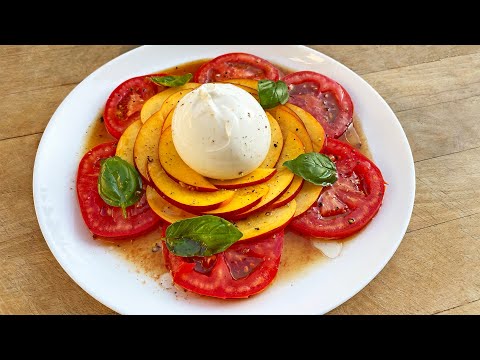 Je vous propose de réaliser une de mes recettes incontournables pour l’été : Une salade composée de burrata, de pêche et de tomates. Le sucré de la pêche, la douceur de la tomate se marie à merveille avec le côté très crémeux de la burrata. C’est une recette facile et rapide pour tous les fans de sucré-salé.