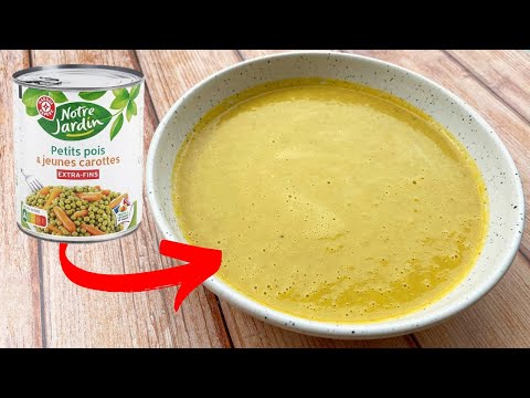 Ce velouté est réalisé à partir de petits pois et carottes en boîte ! C'est une solution parfaite pour un repas rapide et nourrissant. Pour réaliser cette recette, vous aurez besoin que de quelques ingrédients !